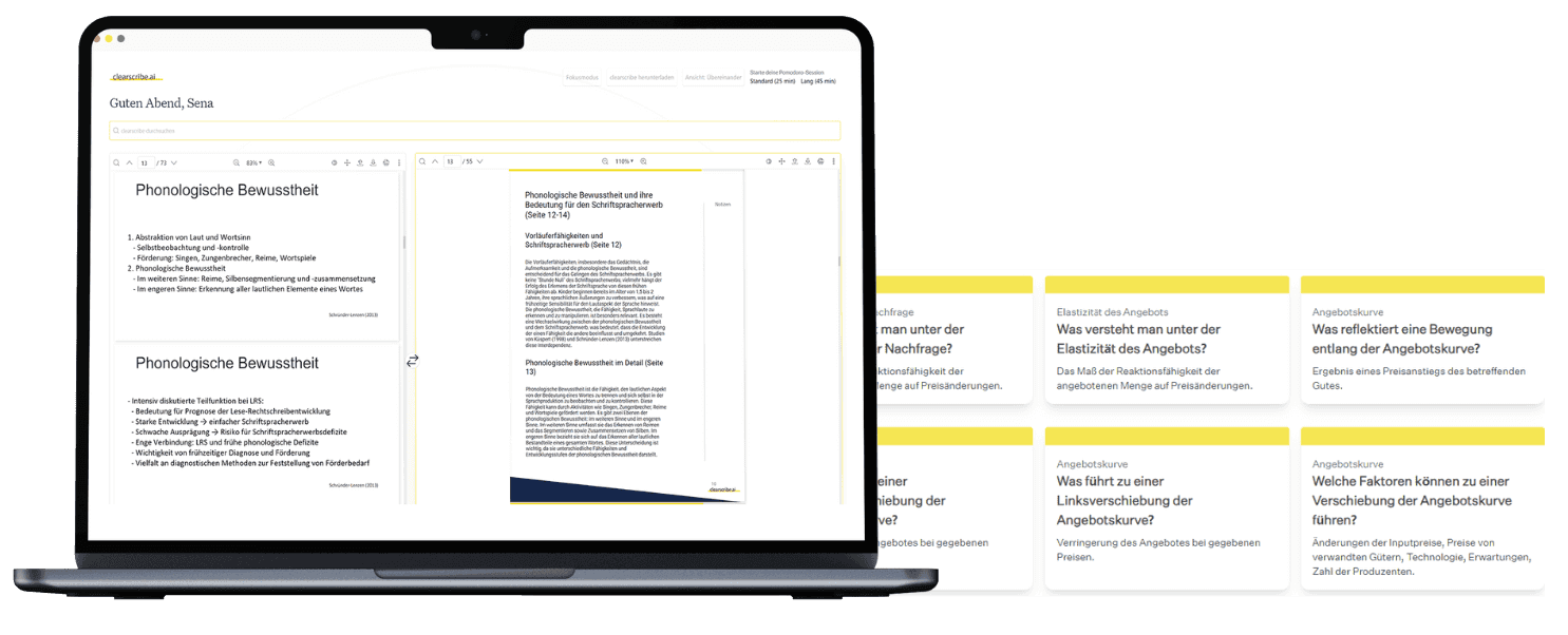Transformiere deine Vorlesungen in effektive Lernhilfen mit den clearscribe Karteikarten – maßgeschneidert durch KI.